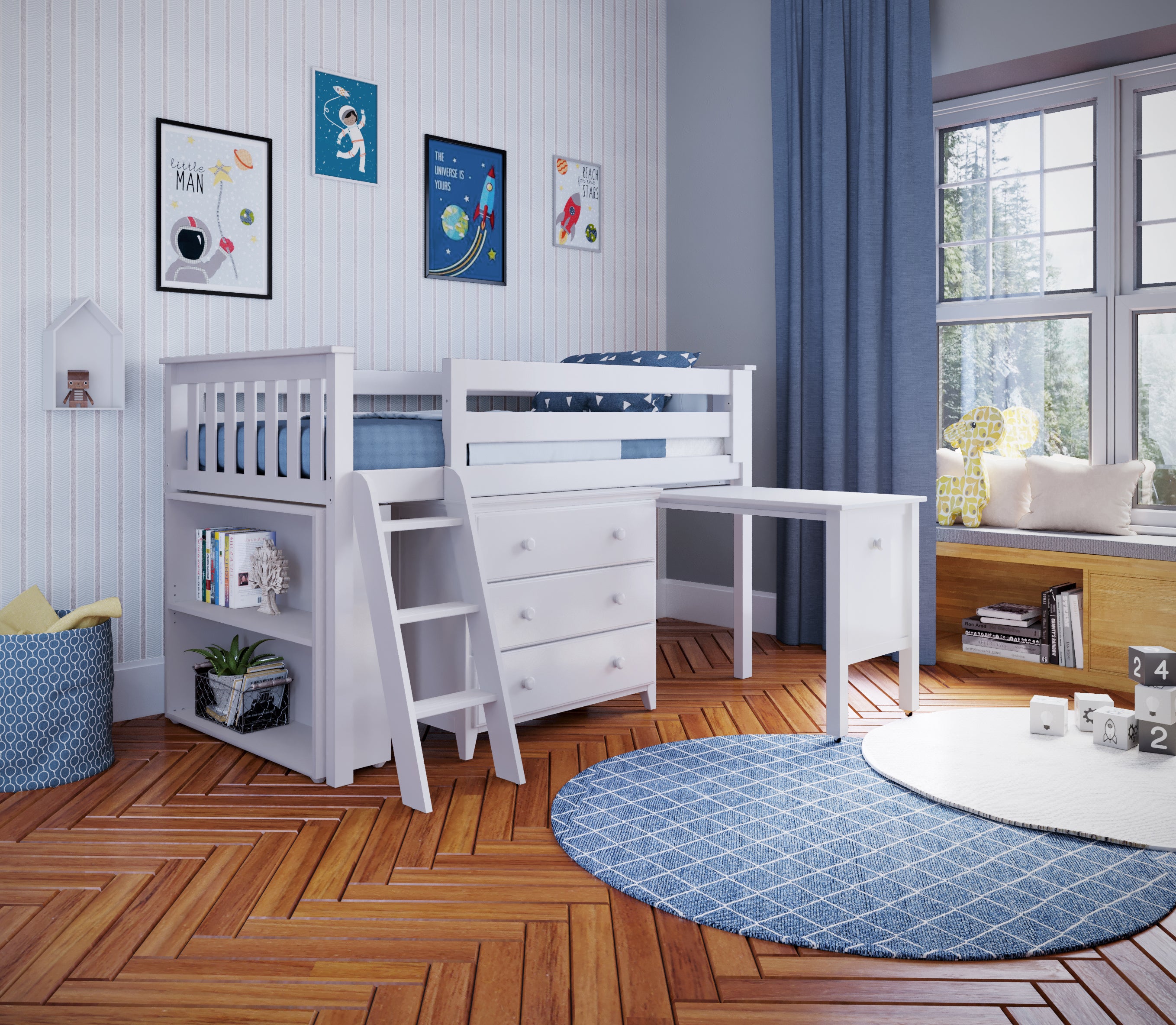 Windsor Low Loft Bed with Dresser, Bookshelf & Desk
